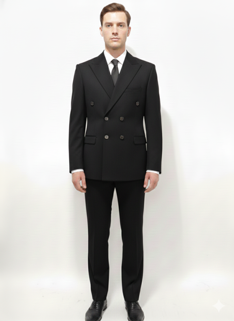 کت و شلوار دبل برست مشکی با طراحی کلاسیک و شیک، مناسب برای مجالس رسمی و محیط کاری است. جنس باکیفیت و دوخت دقیق این محصول، راحتی و استایل بینظیری را به شما هدیه میدهد. انتخاب عالی برای ظاهر حرفهای و جذاب در هر موقعیتی.