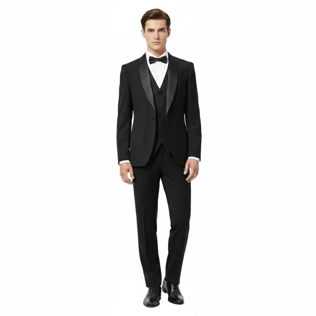 کت و شلوار مجلسی دامادی تک دکمه با یقه شال ساتن، مناسب آقایان خاص و خوشسلیقه. طراحی شیک و کلاسیک این لباس، ظاهری منحصر به فرد و رسمی به شما میبخشد و برای مراسمهای مهم بهترین انتخاب است. راحتی و زیبایی در کنار هم.